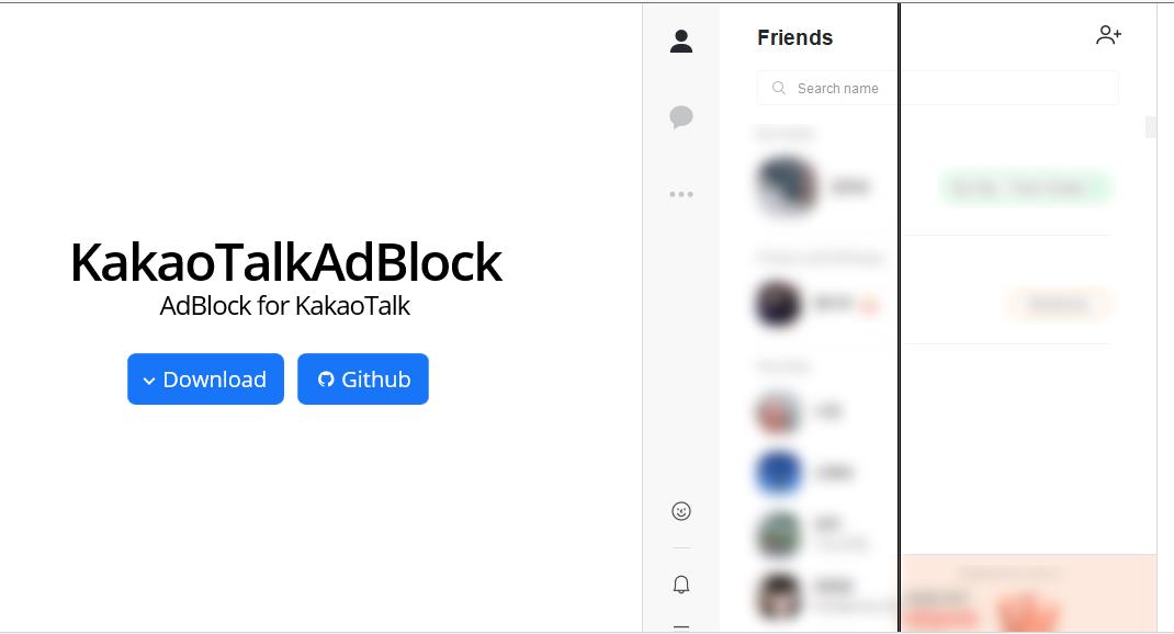 PC 카카오톡 메신저 광고 차단 프로그램은 공식 사이트은 github에서 다운받으세요.