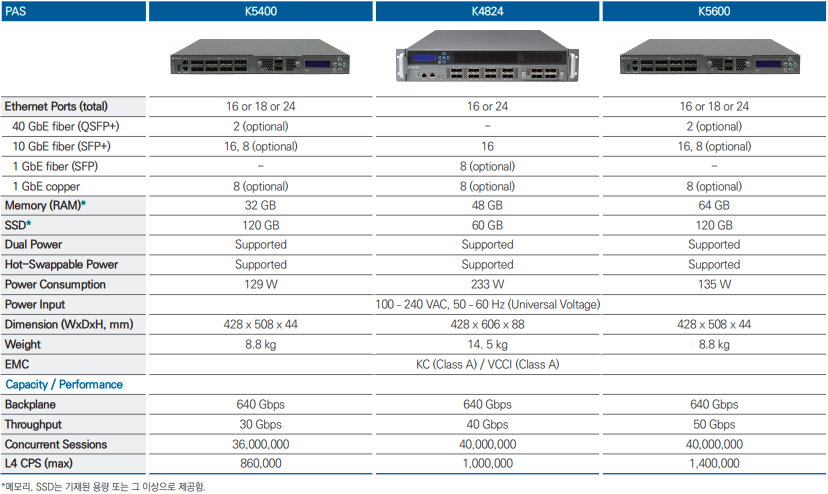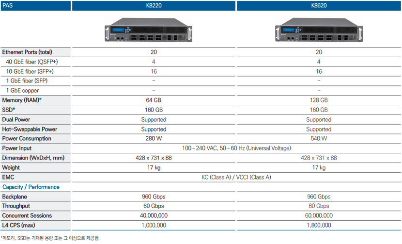 PAS-K는 서버 대신 SSL 암호화 및 복호화를 처리하기 때문에 서버의 부담을 줄이고 애플리케이션 서비스 지연 문제를 최소화합니다. PAS-K는 SSL 가속 기능을 기본으로 제공하며, 요구 대역폭에 따라 선택적으로 추가 할 수 있습니다.