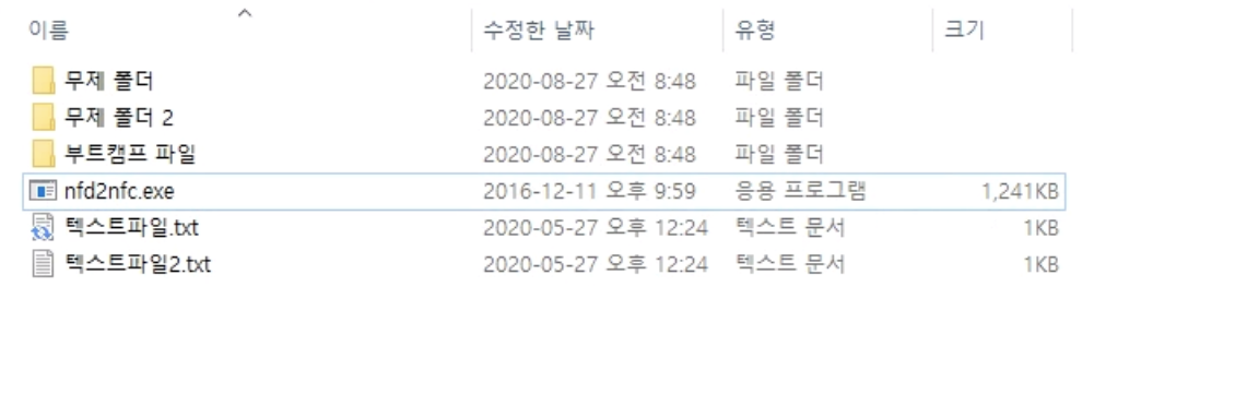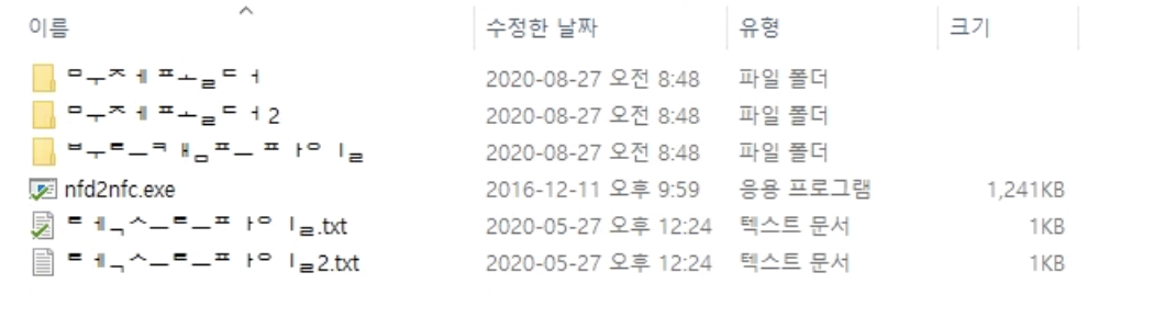 하위폴더가 여러개 있으면 각 하위폴더에 가셔서 nfd2nfc.exe를 실행 시켜주어야 합니다.