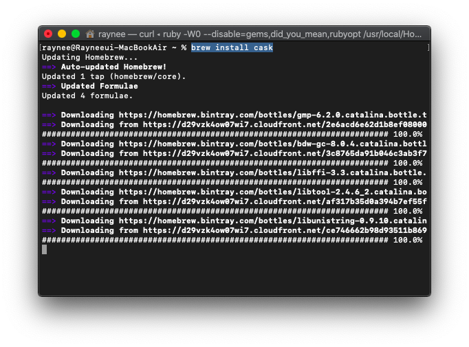 이렇게 입력하면 cask가 설치됩니다. 참~ 쉽죠~
