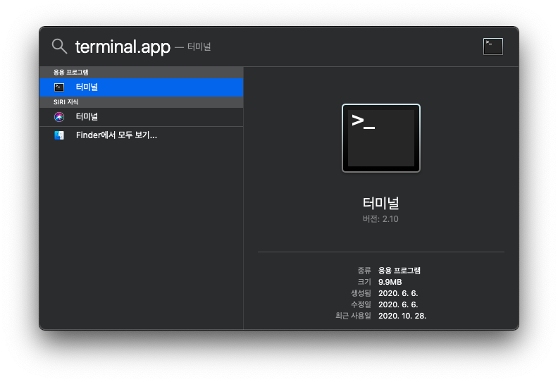 Sportlight 검색을 통해 terminal 창을 여러 줍니다.