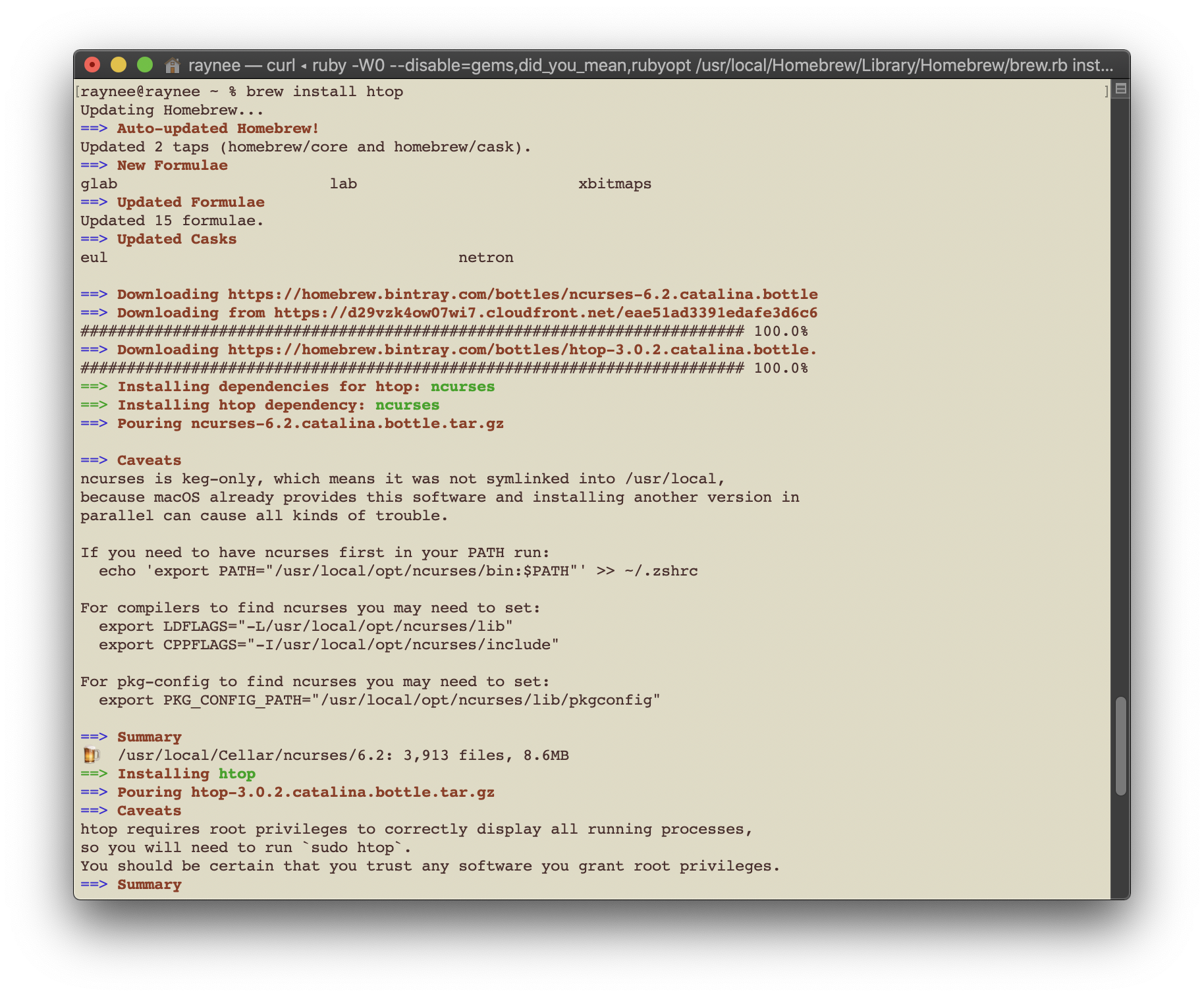 htop 를 설치 후, 그냥 htop라고 입력만 하면 terminal창에서 확인이 가능합니다.
