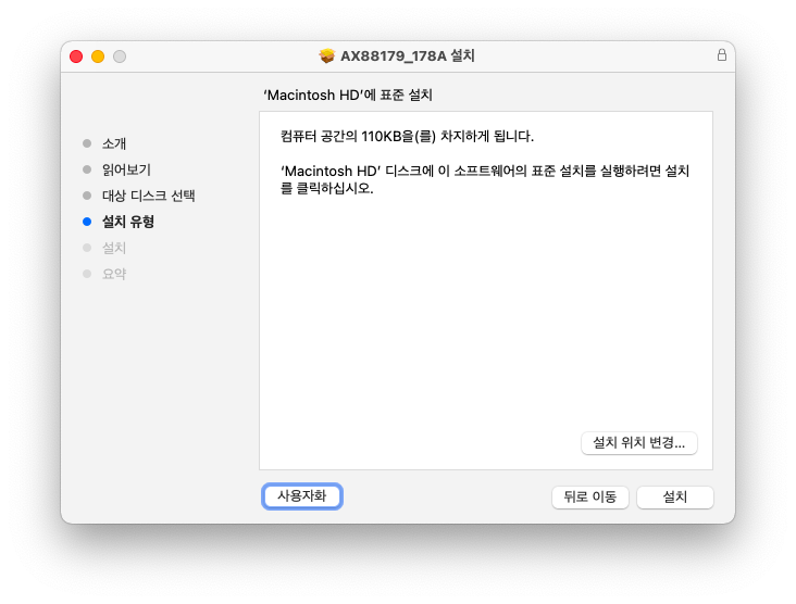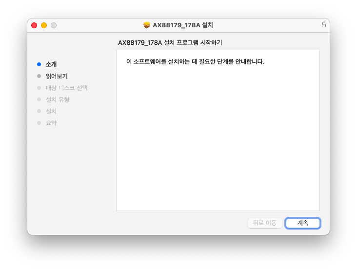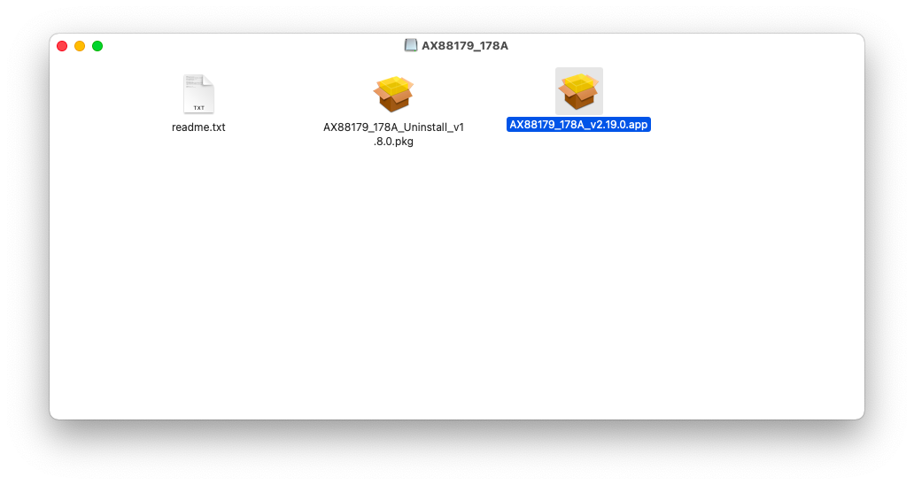 zip 파일을 압축을 풀고, AX88179_178A_v2.19.0.app파일을 실행합니다.