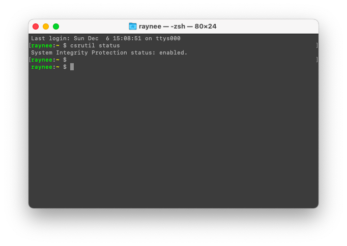 설치가 완료되었으면, 시스템 무결성 설정을 원래 처럼 Enabled로 해주시면됩니다.
