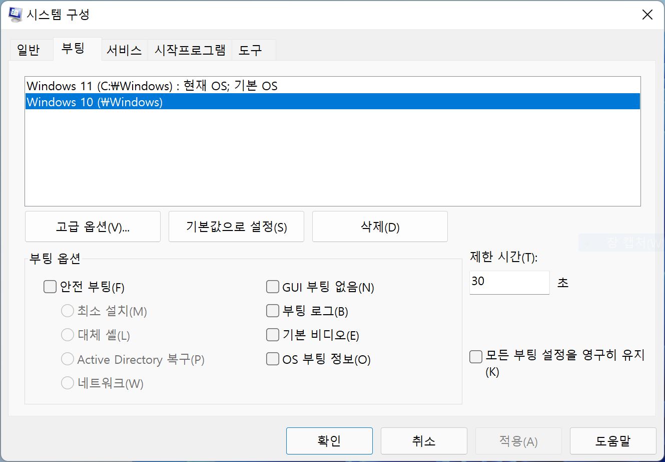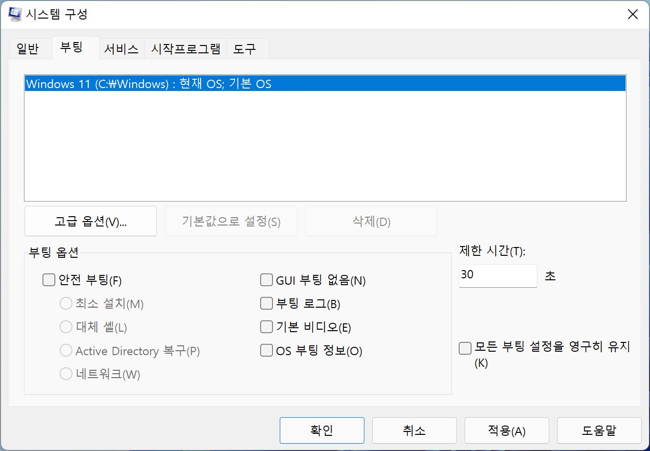 불러운 시스템 구성 화면에서 "부팅"탭을 선택 합니다.