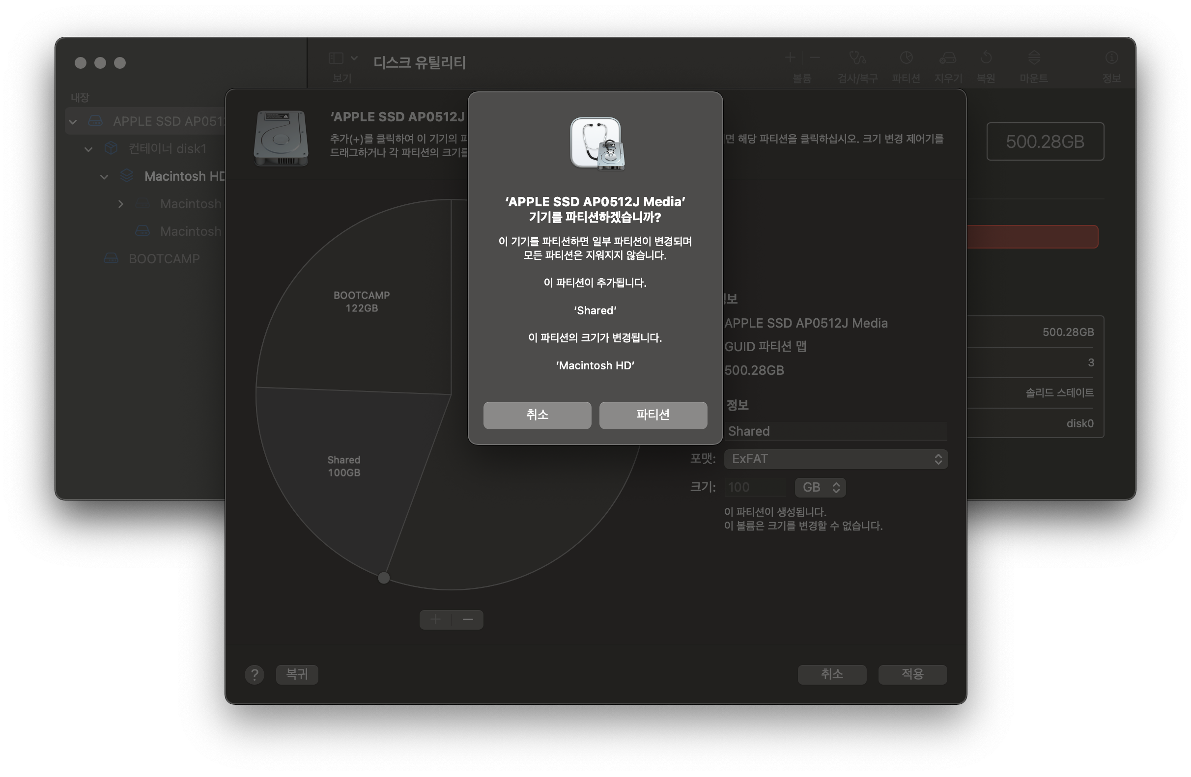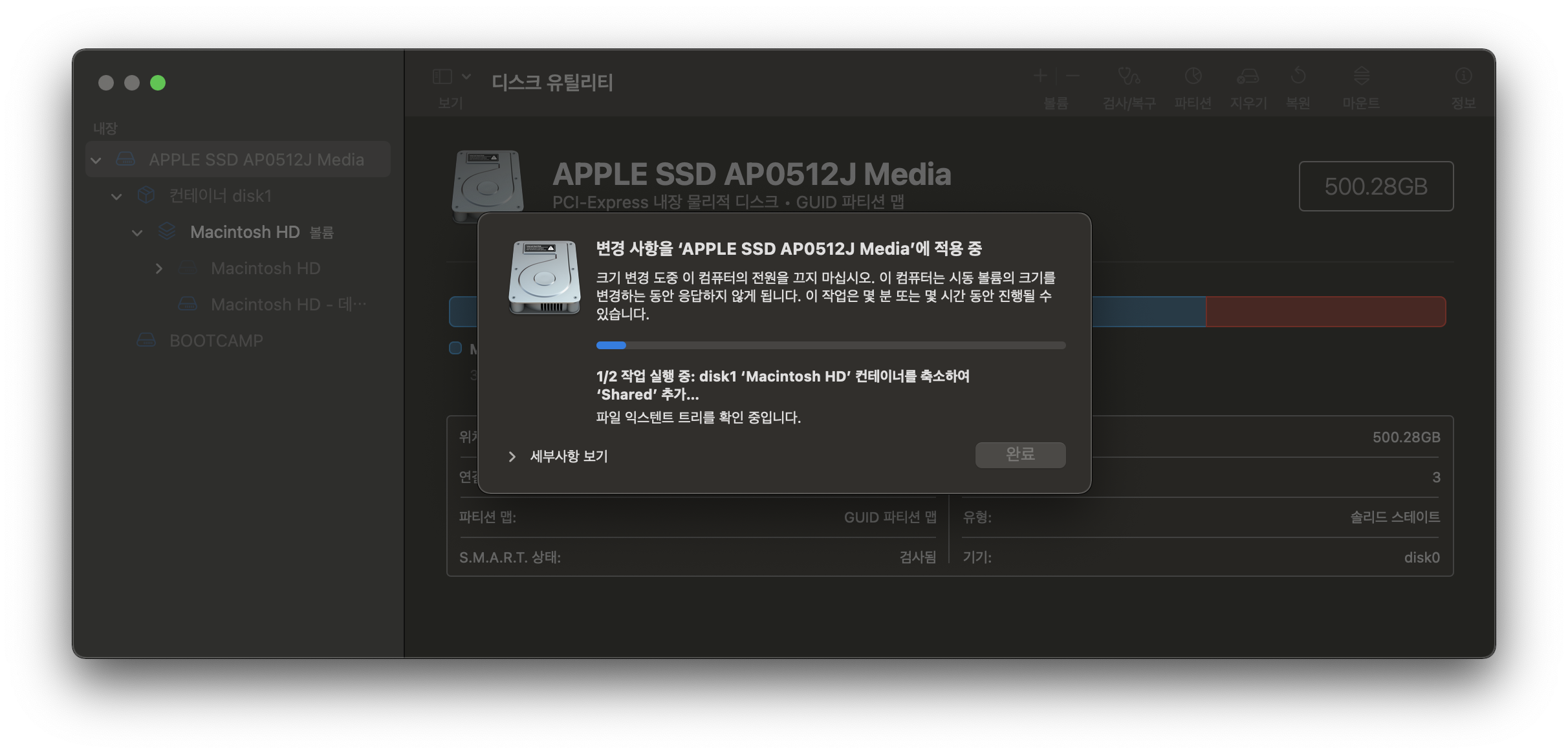 전 부트캠프를 설치 하였기때문에 Bootcamp 영역과 맥영역이 있습니다.
