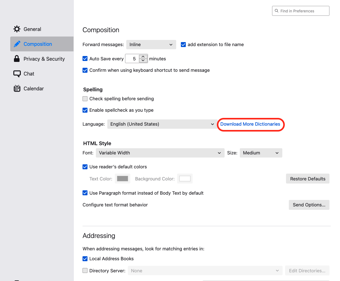 창이 뜨면 Composition에서 Language의 Download More Dictionaries를 클릭힌다.
