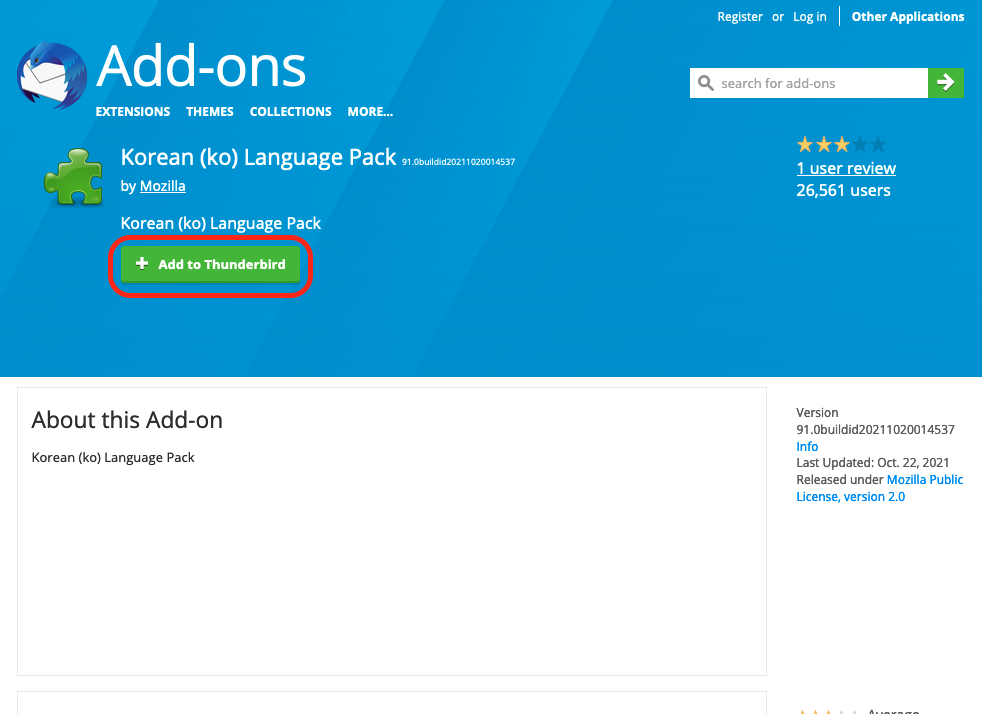 한글패치를 썬더버드에 적용 시켜 줍니다.