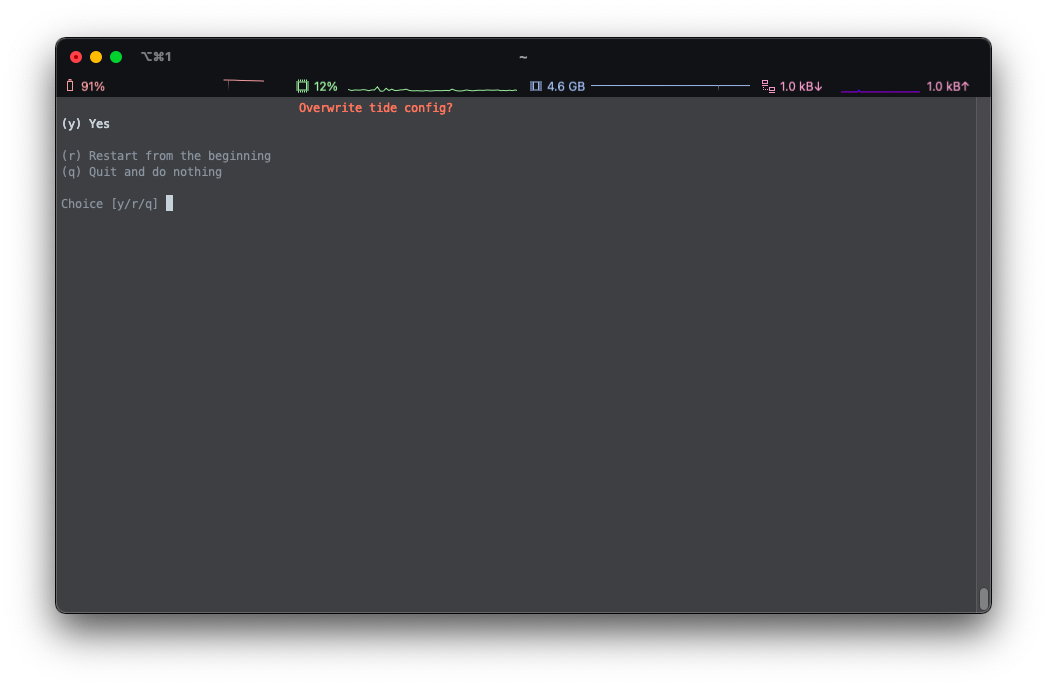 exec fish --init-command "set -g fish_greeting; emit _tide_init_install"