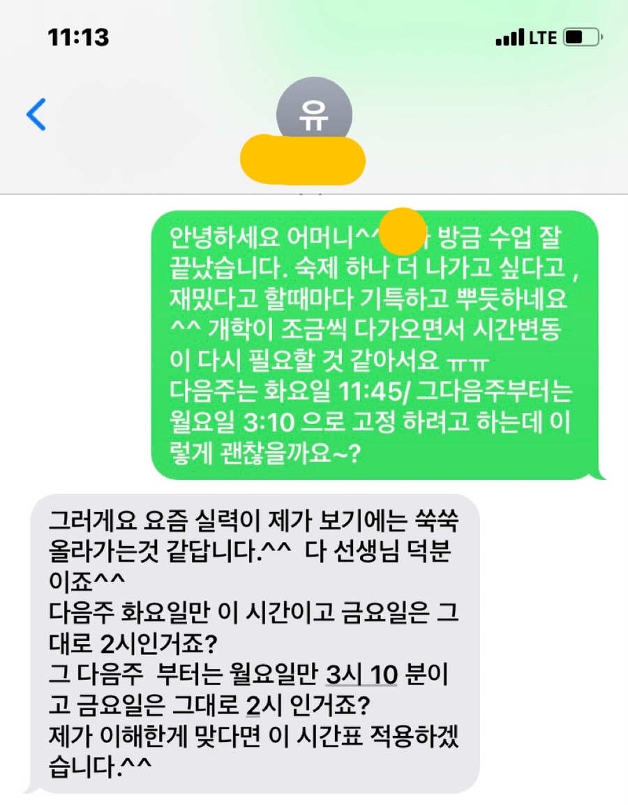 대면보다는 세심하게 봐줄 수 없다는게 항상 아쉬운점이긴 하지만 그래도 대면못지 않게 많은 발전을 해서 매번 놀라는 것 같아요 ㅎㅎ
