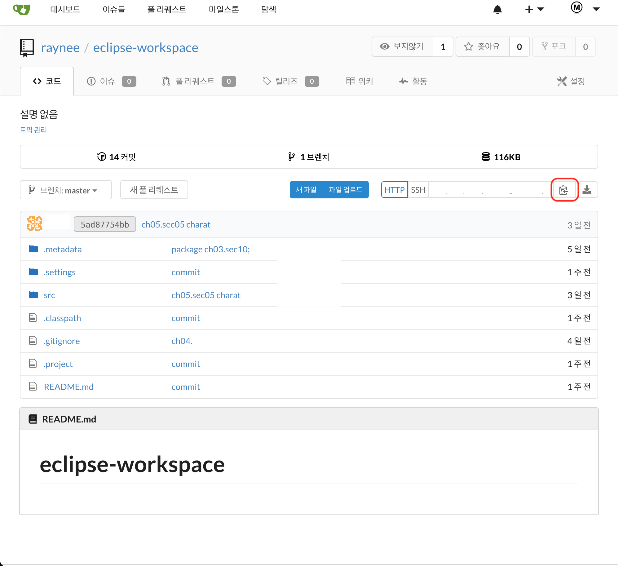 그럼 Gitea나 GitHub에 들어가 자신의 저장소 주소를 복사합니다.