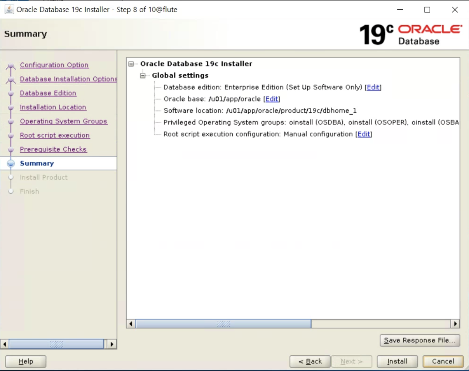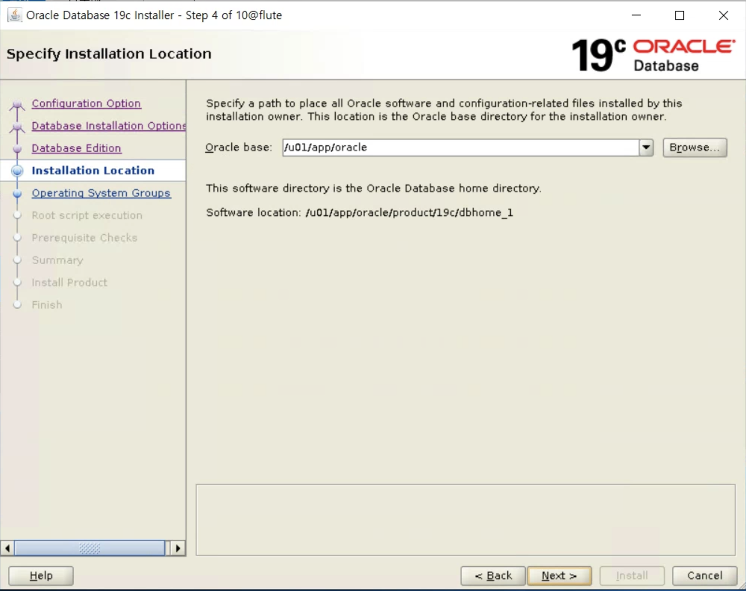 [FLUTEDB]oracle@flute$ mkdir -p /u01/app/oracle/product/19c/dbhome_1