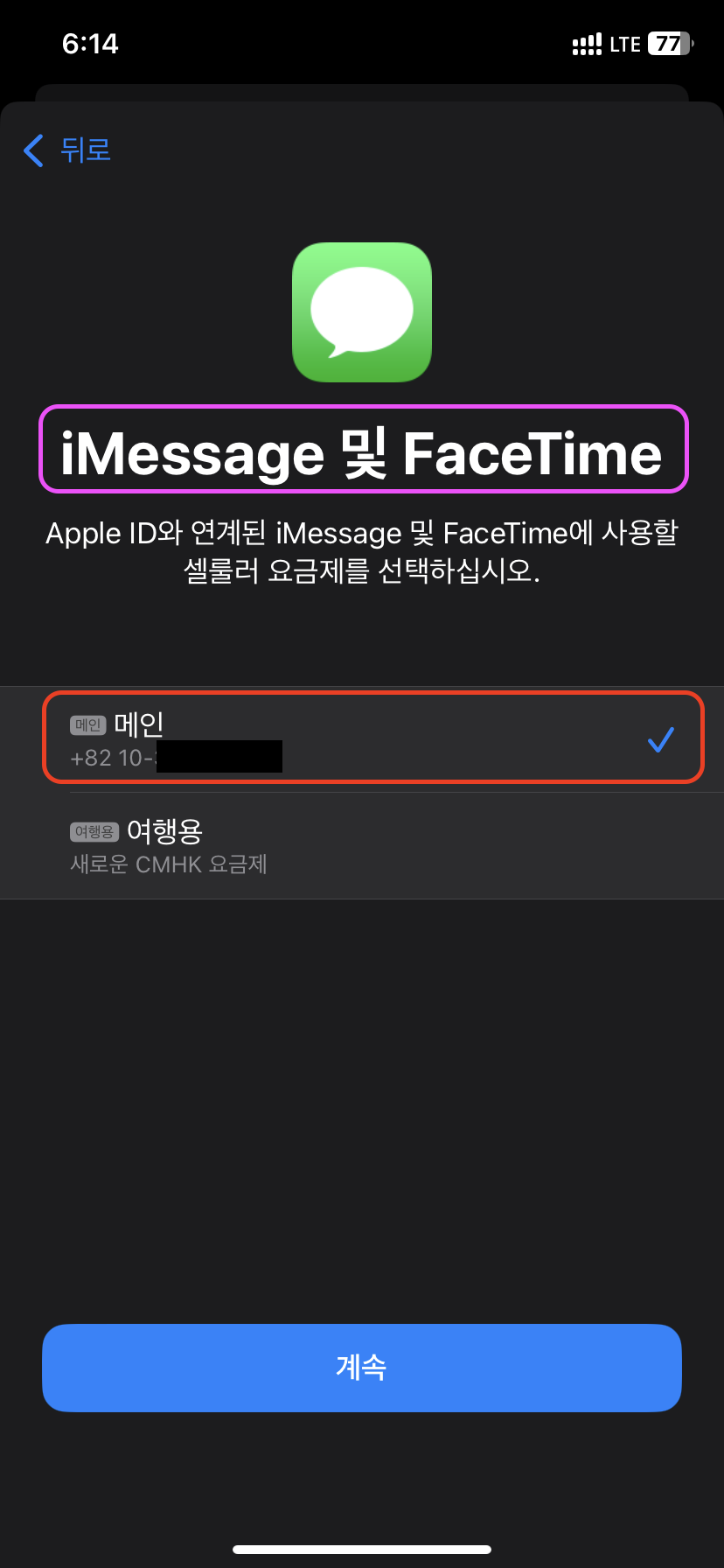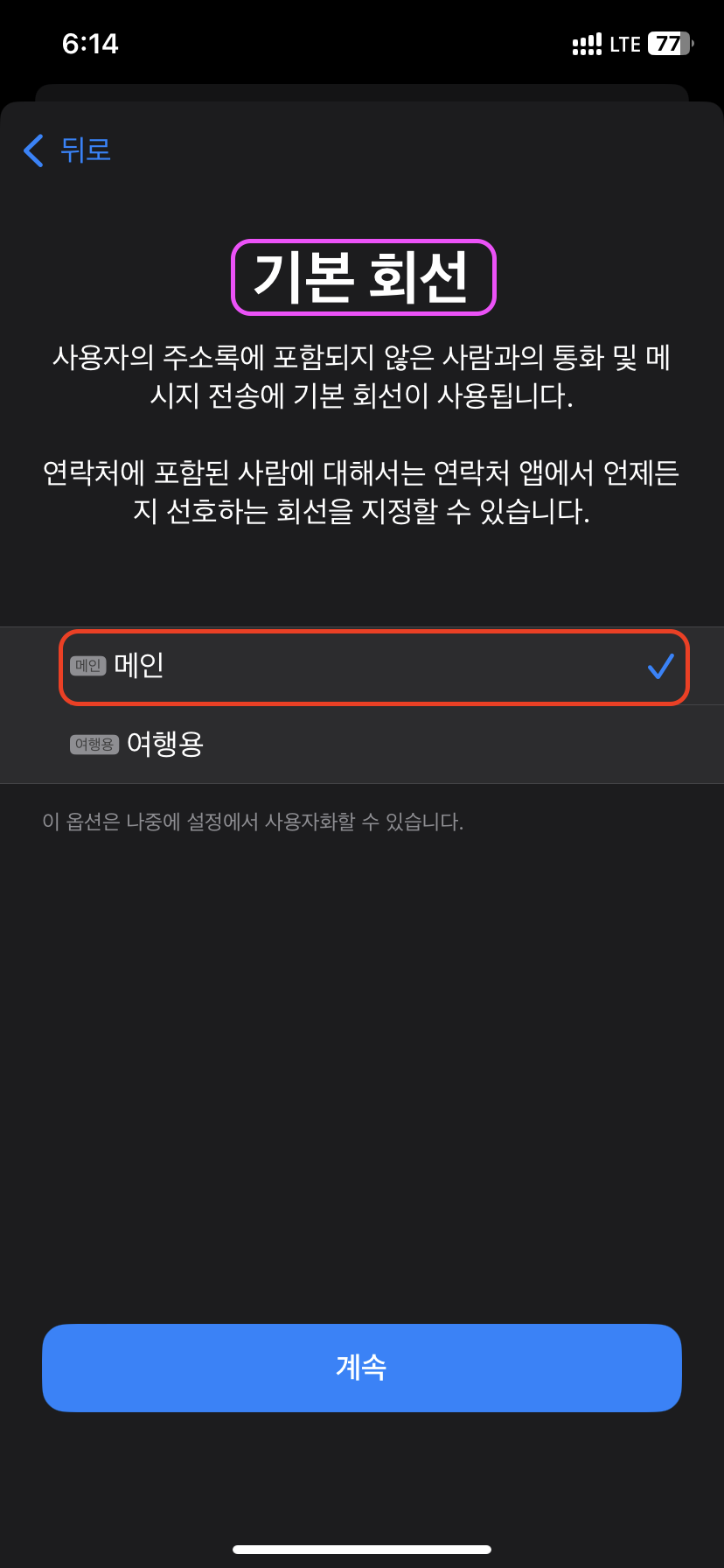 당연하게 메인인 내 핸드폰을 선택