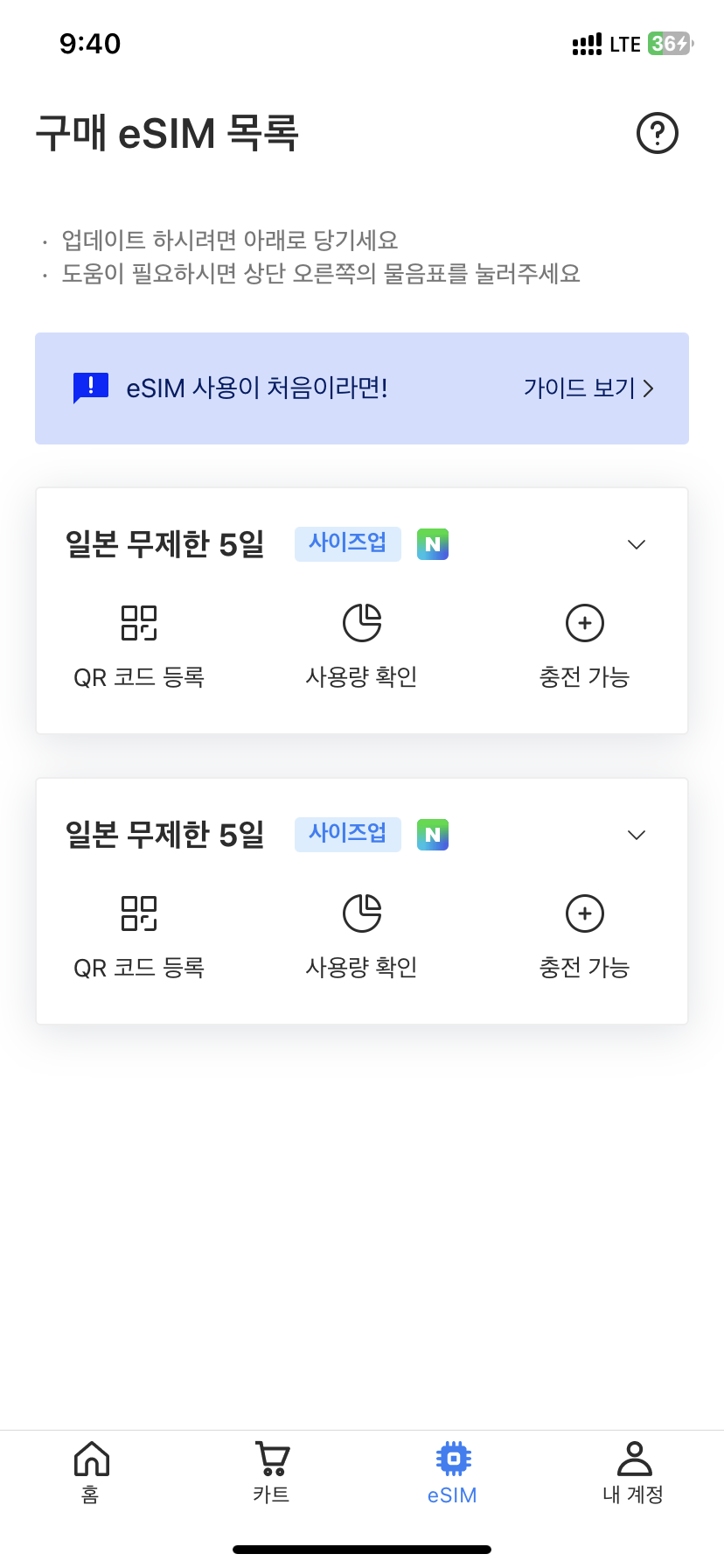 어차피 E-sim은 한번 등록하면 재등록 할 일이 거의 없다.
