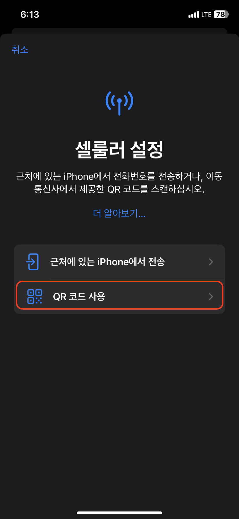 QR코드 사용을 누른다.