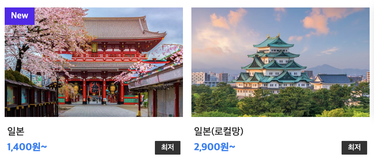 유심 구매를 보면 일본, 일본(로컬망) 두가지가 있습니다.