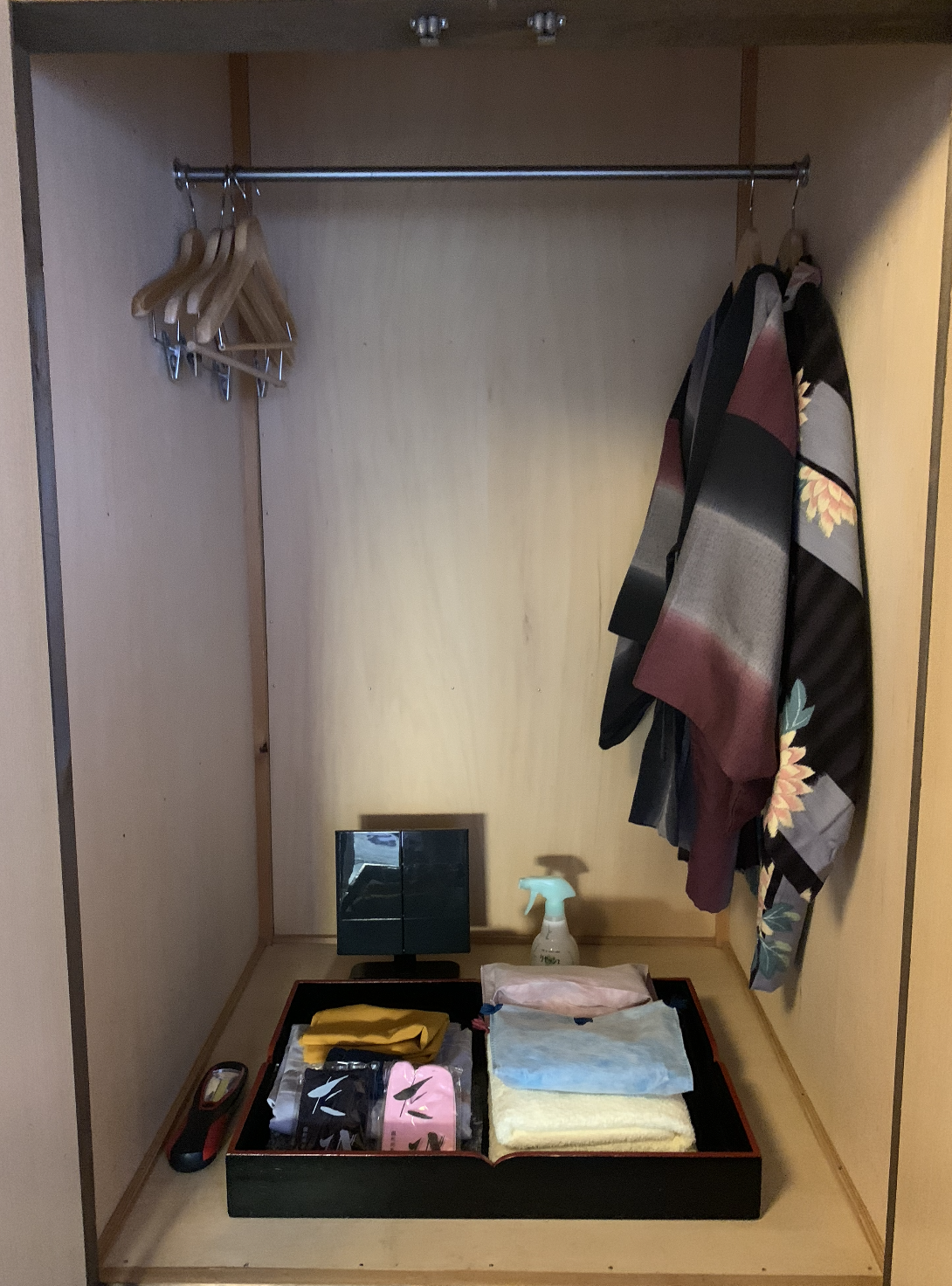 비품은 일반 호텔과 다르게 일본전통 복장과 양말이 있습니다.