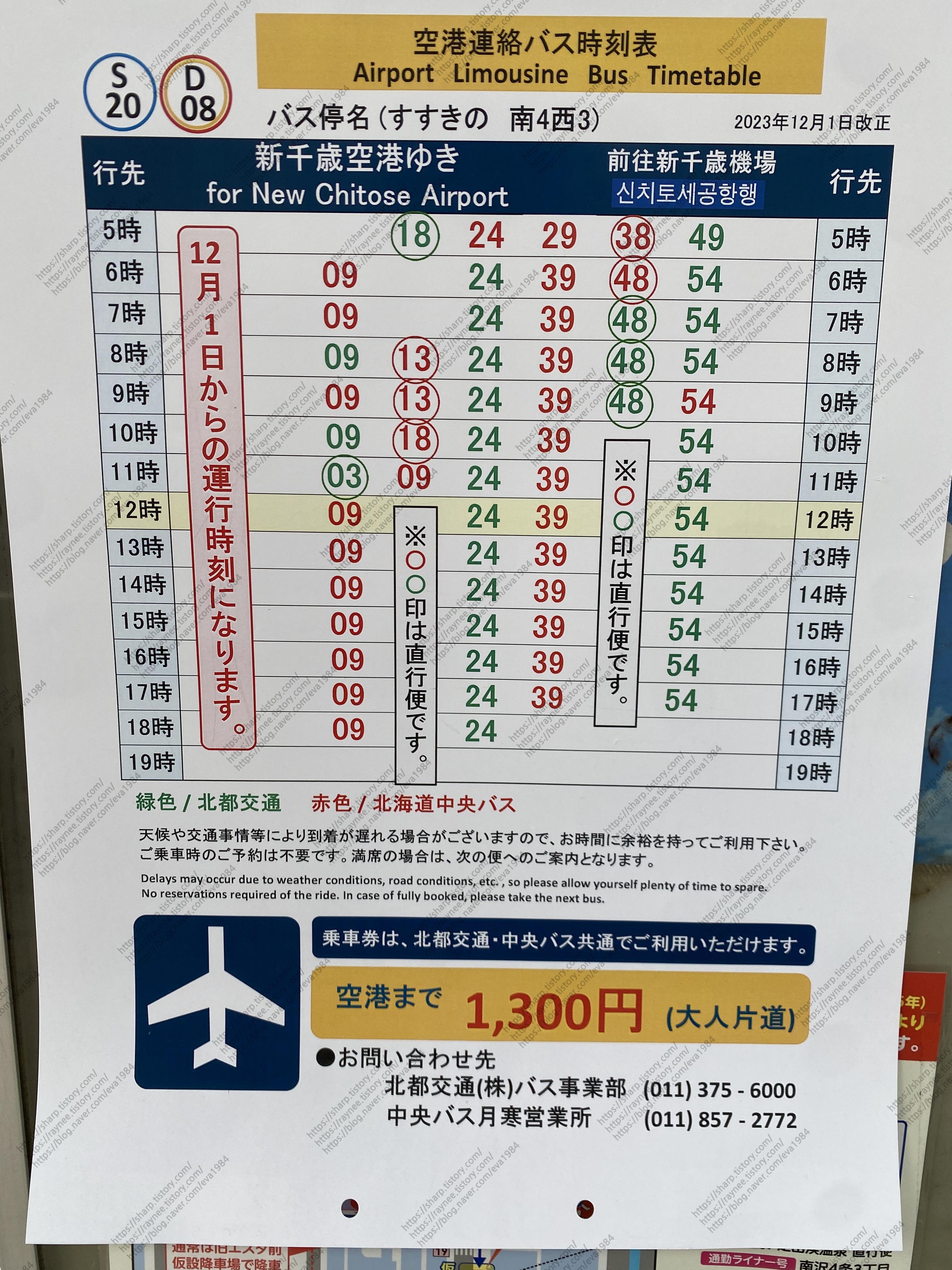삿포로가 숙소면 빠르겠지만 개인적으로 스스키노역은 공항버스가 좋은 것같다.