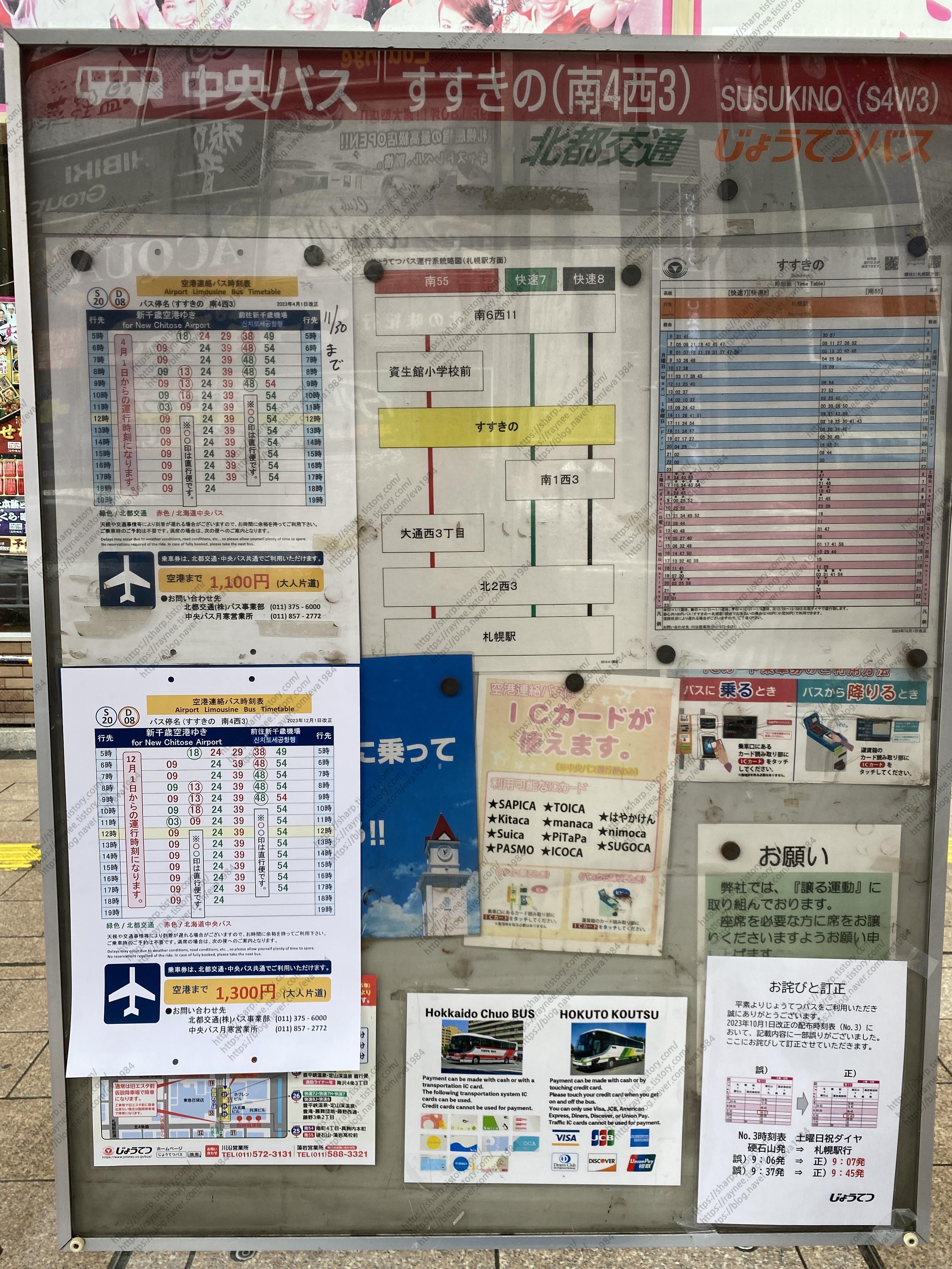 스스키노역 1번 출구에서 신치토세공항으로 가는 버스를 탈 수 있다.